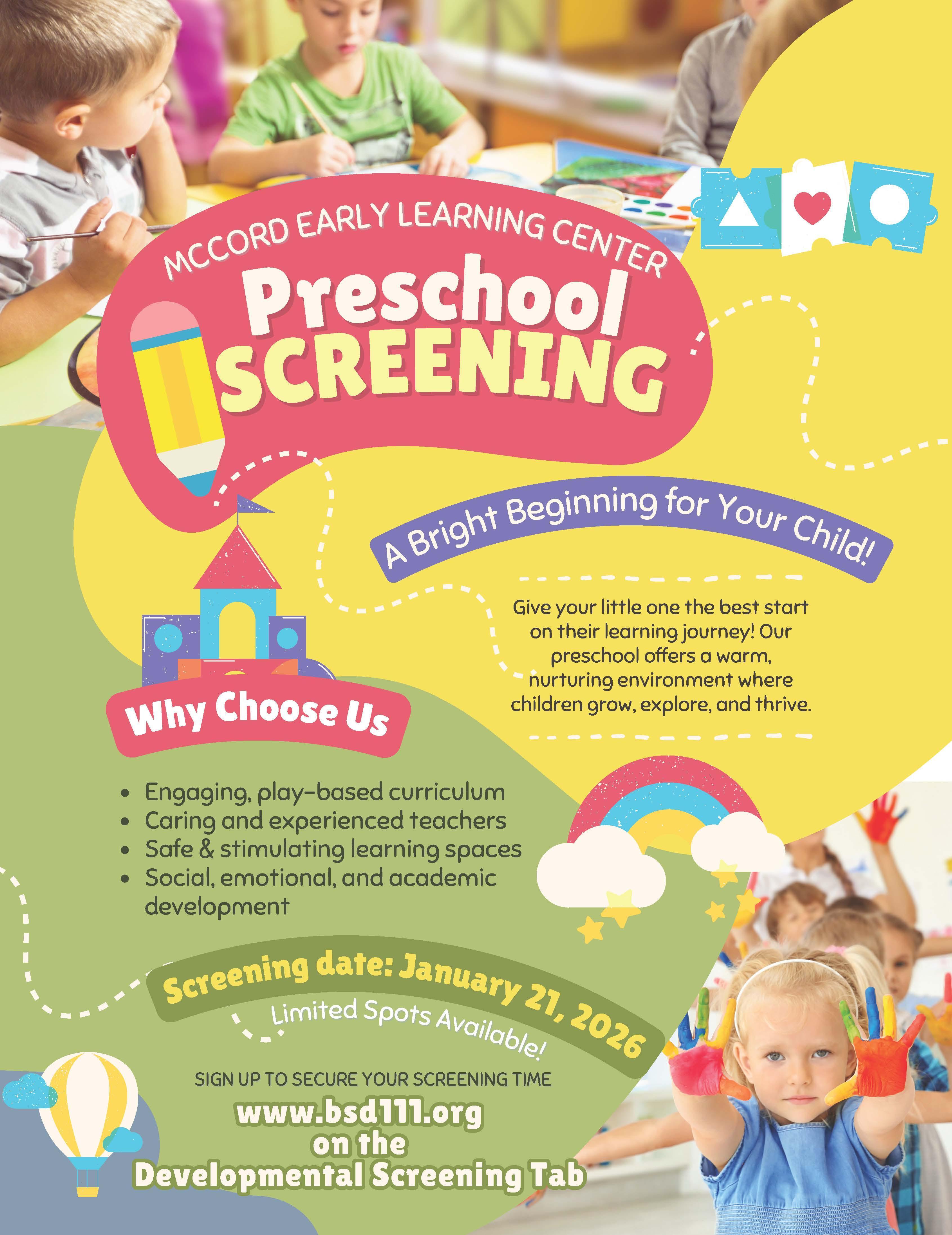 Spaces fill quickly, so schedule your child’s screening today and get ready to start their preschool adventure at McCord Early Learning Center—where learning takes off to infinity and beyond! 🚀